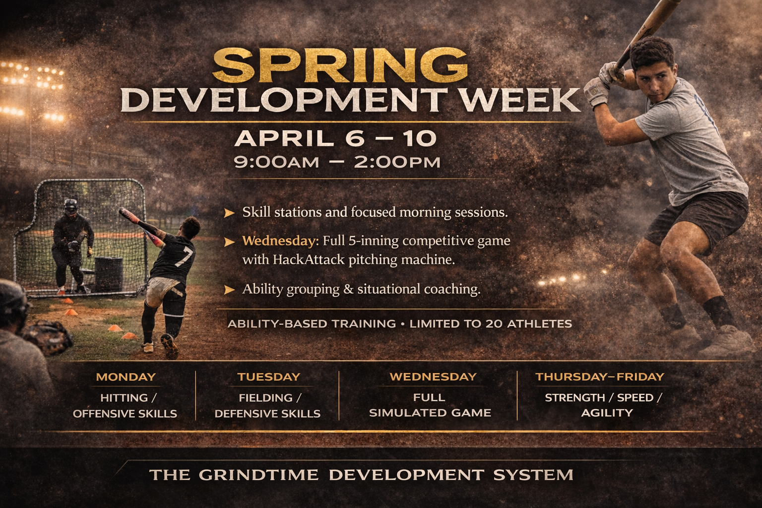 GrindTime Baseball is built on a simple, proven structure—weekly development, supported by focused training labs and personalized coaching.